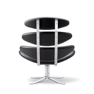 Corona-stolen er et særpræget design eftertragtet for dens unikke komposition. Fire elliptiske sædepuder udgør ryggen og sædet. Fuldt polstret og aftagende i størrelse er puderne påført til en støttende "rygrad af stål i mat krom.
