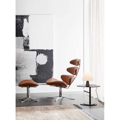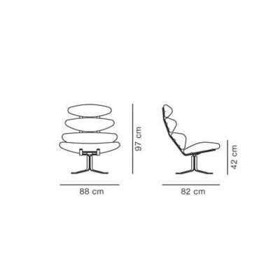 Skulpturel, iøjnefaldende og original - Corona-stolen er et studie i geometri. Et konsekvent design med elliptisk formet polstrede sædepuder der bliver mindre og mindre opefter. Et spændende tilgangsmåde, der udfordrer den konventionelle måde at sidde på, hvilket også har ført til at Corona er blevet et eftertragtet design ikon over hele verden.