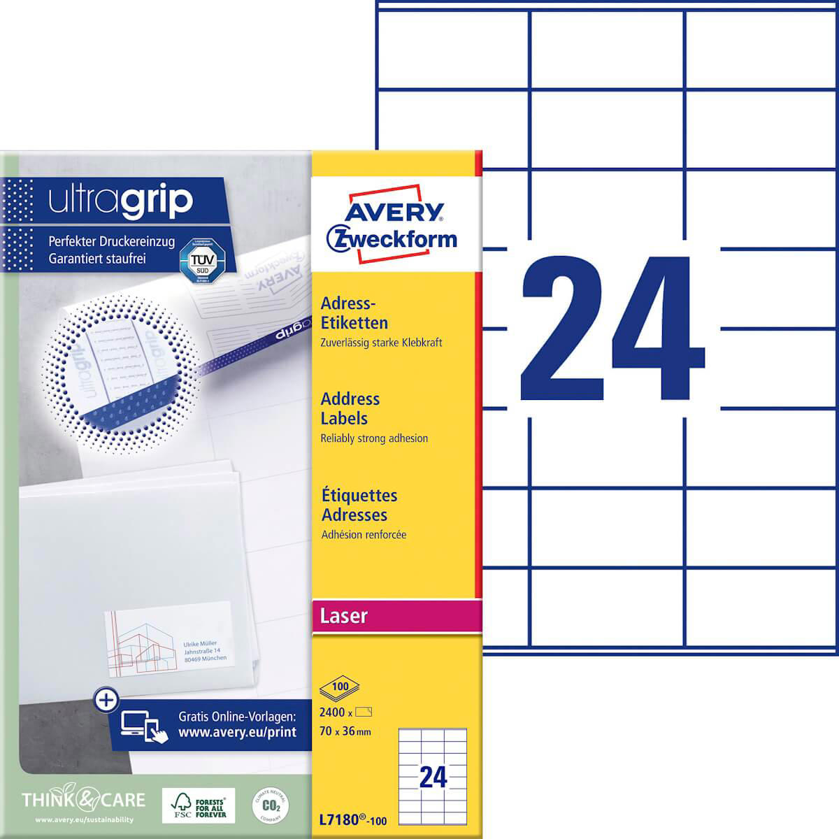 • Avery L7180 etiketter - med Ultragrip – for præcise udskrifter