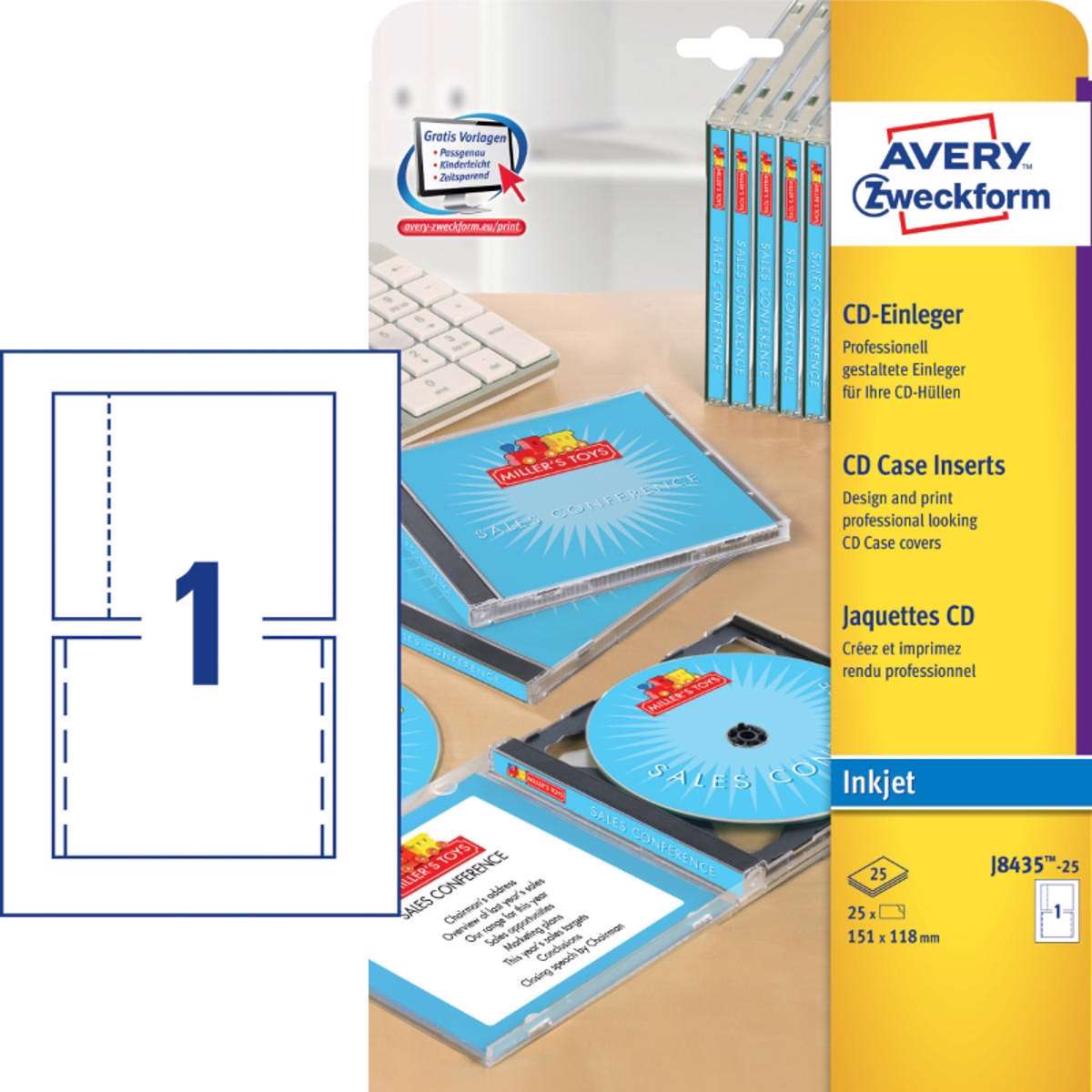 Avery J8435 etiketter - 25 ark A4 | Kontorland - CD omslag til Inkjetprinter