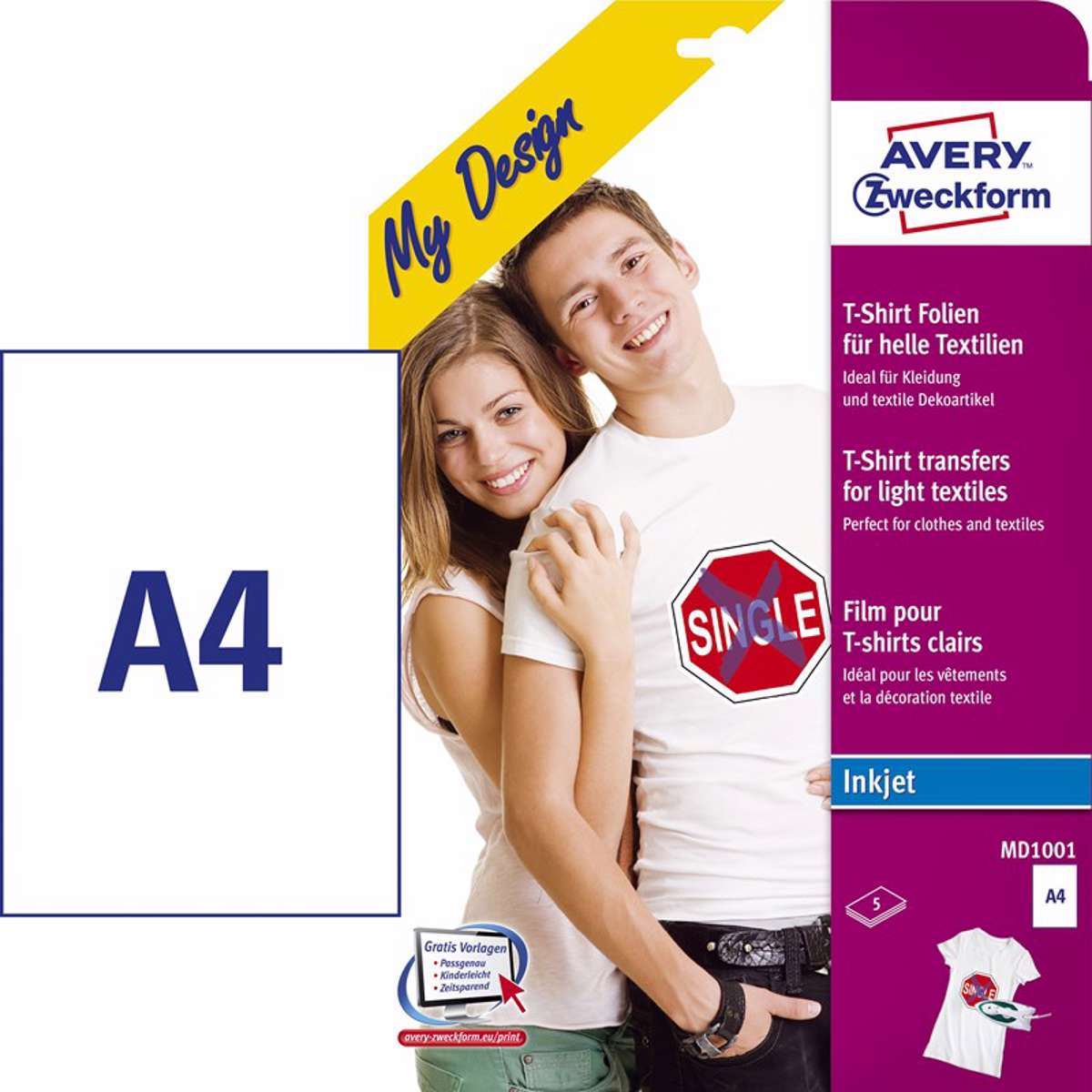 Avery MD1001 etiketter – 5 ark A4 | Kontorland - Design din egen T-shirt kollektion med Avery transfer papir - til privat brug eller professionel branding