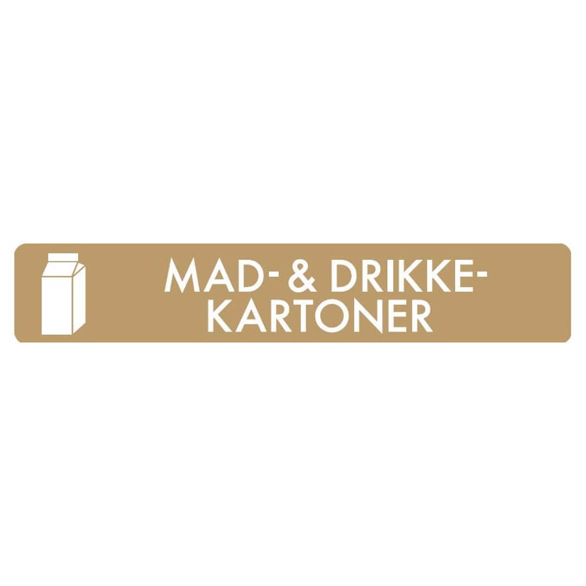 Piktogram / klistermærke til markering af affaldssortering Mad- & drikkekartoner 16x3 cm farve. Hvidt symbol og tekst på beige baggrund.