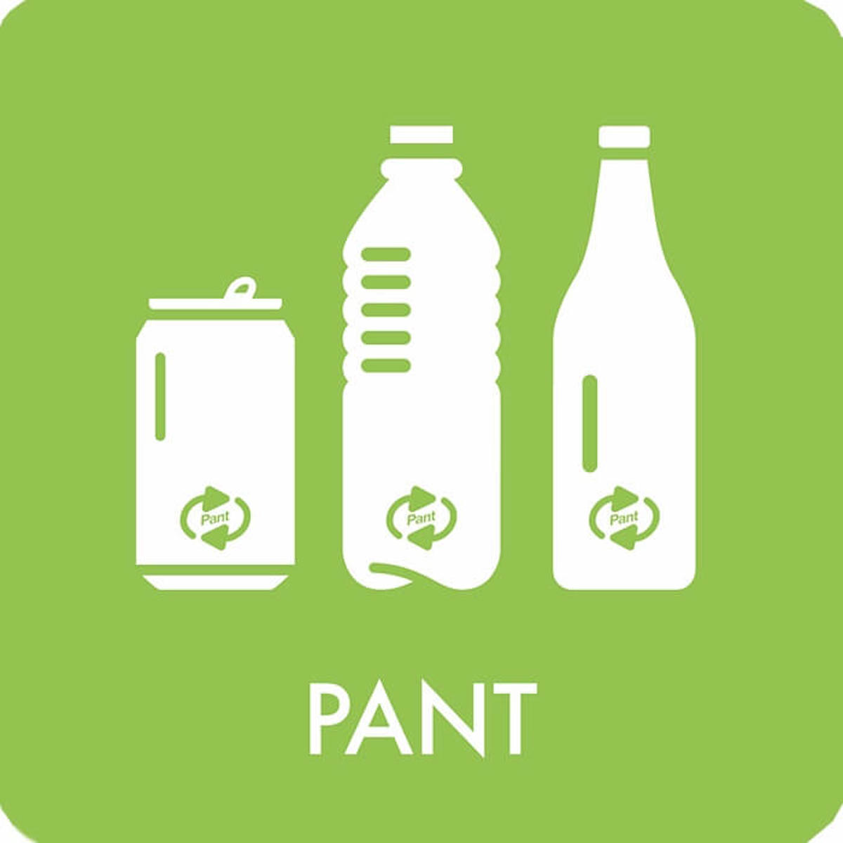 Piktogram affaldssortering Bica magnetisk 12x12 cm med hvid tekst PANT på lys grøn baggrund