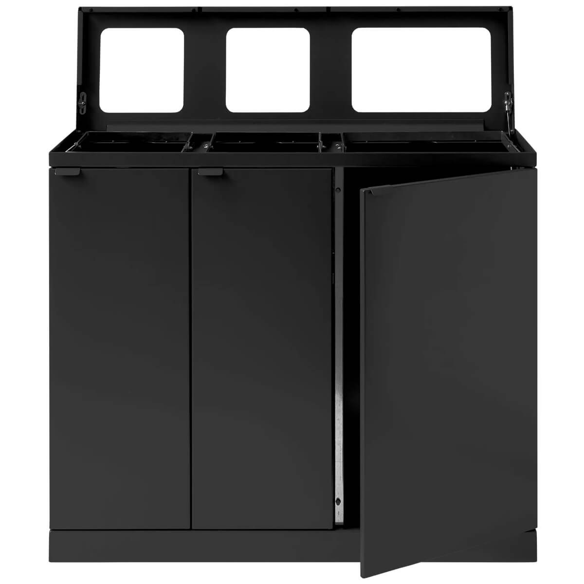 Der er altid noget affald som er mere pladskrævende end andet. I dette affaldssystem, 3 beholder sammenbygget modul, er der således en af affaldsbeholderne der er 1,5 gange så stor som de to resterende. Det gør at lige præcis denne model, er en som mange af vores kunder køber. Skal der bruges flere, kan de sættes sammen med alle andre Bica modeller med en dybde på 30 cm.