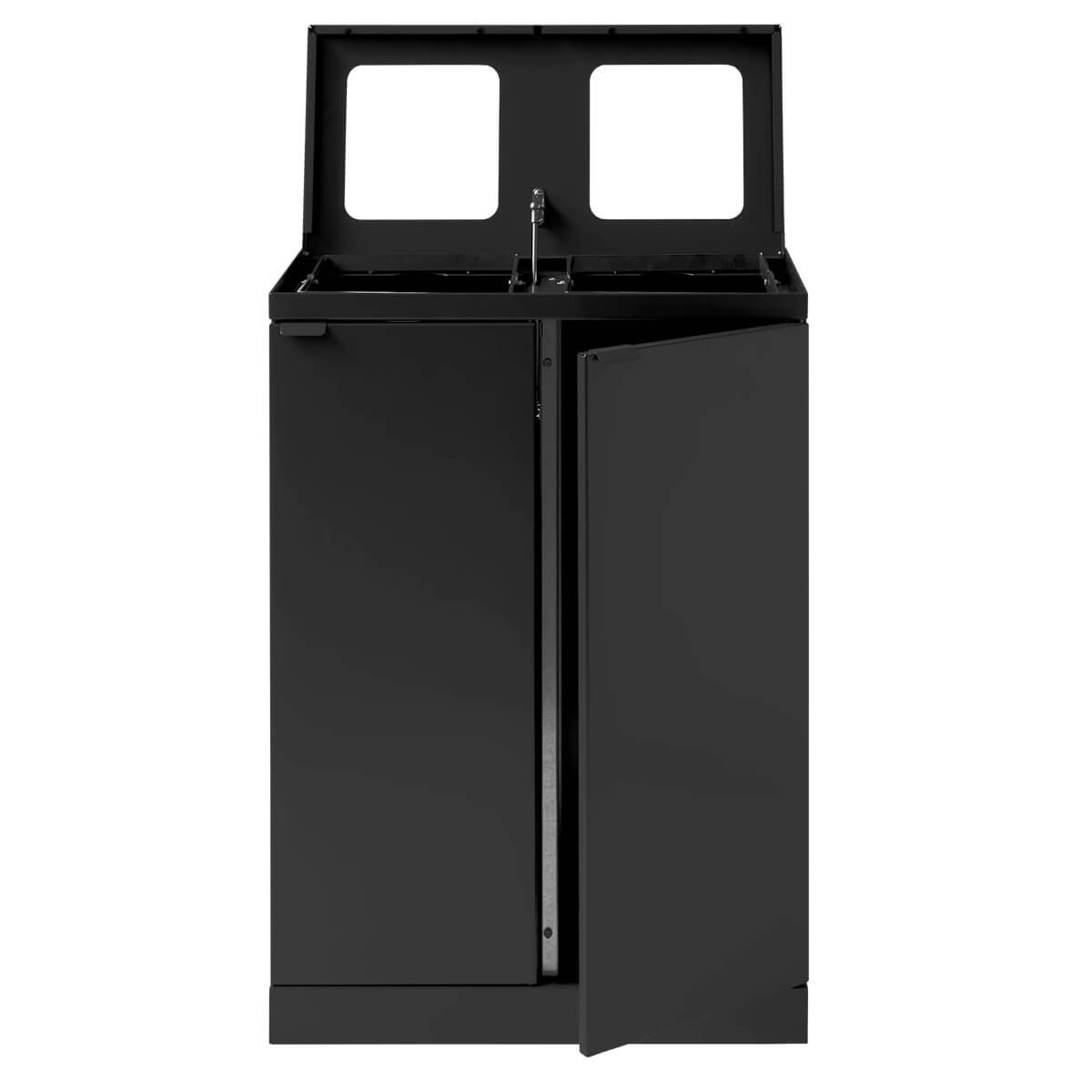 Nem affaldssortering med 2 fraktioner affaldssorteringsspande i et kildesorteringsmøbel. Bica 867 2x65 Liter åben