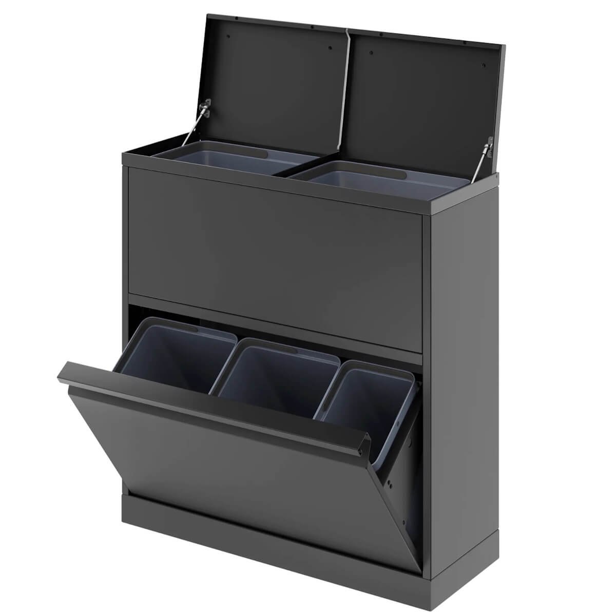 Bestem selv hvordan du vil konfigurere din affaldssortering. Dette sorteringsmøbel kan kombineres med resten af Bica serien med front åbninger.