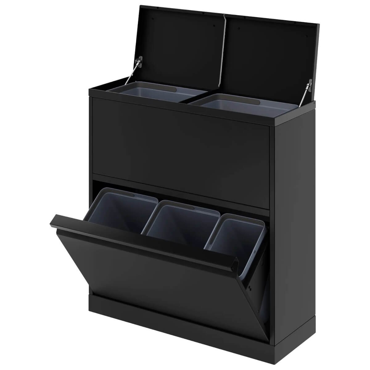 I toppen er der 2 stk. affaldsbeholdere med låg, der minimerer lugt, og som skjuler poserne i de to 20 liters inderbeholdere.