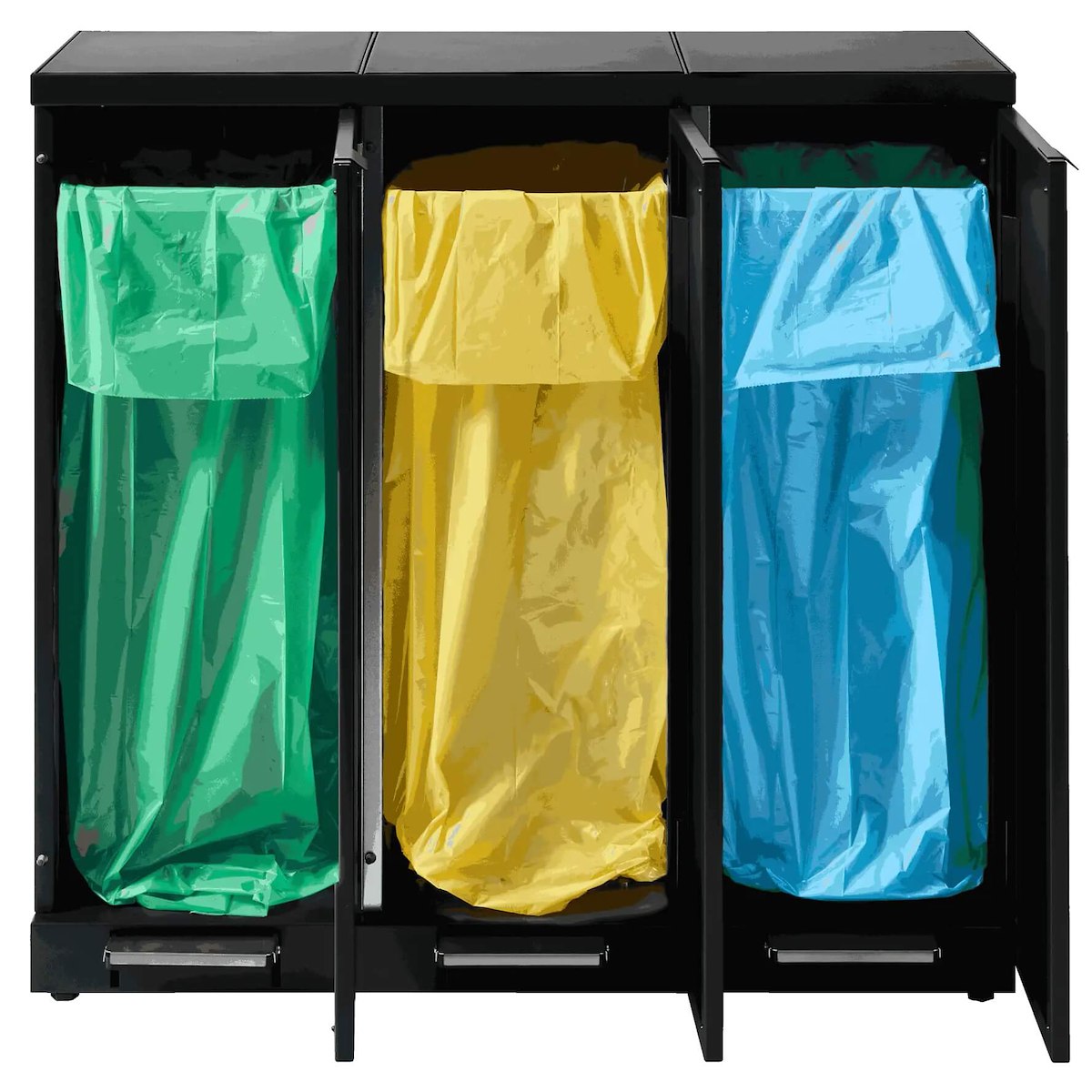 Affaldssystem med 3x65 affaldssortering spande med låg og med fodpedaler og dermed håndfri åbning Bica Model 976 OBS: Farve sort