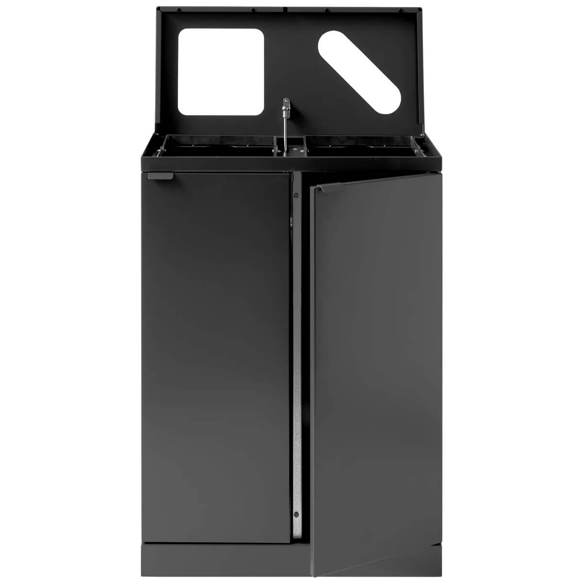 Bica Affaldssorteringssystem 2x65 Liter - 2 moduler affaldssorteringsspande i ét kildesorteringsmøbel Carbi model 888 med formet indkast + låg til papir og almindeligt skrald.