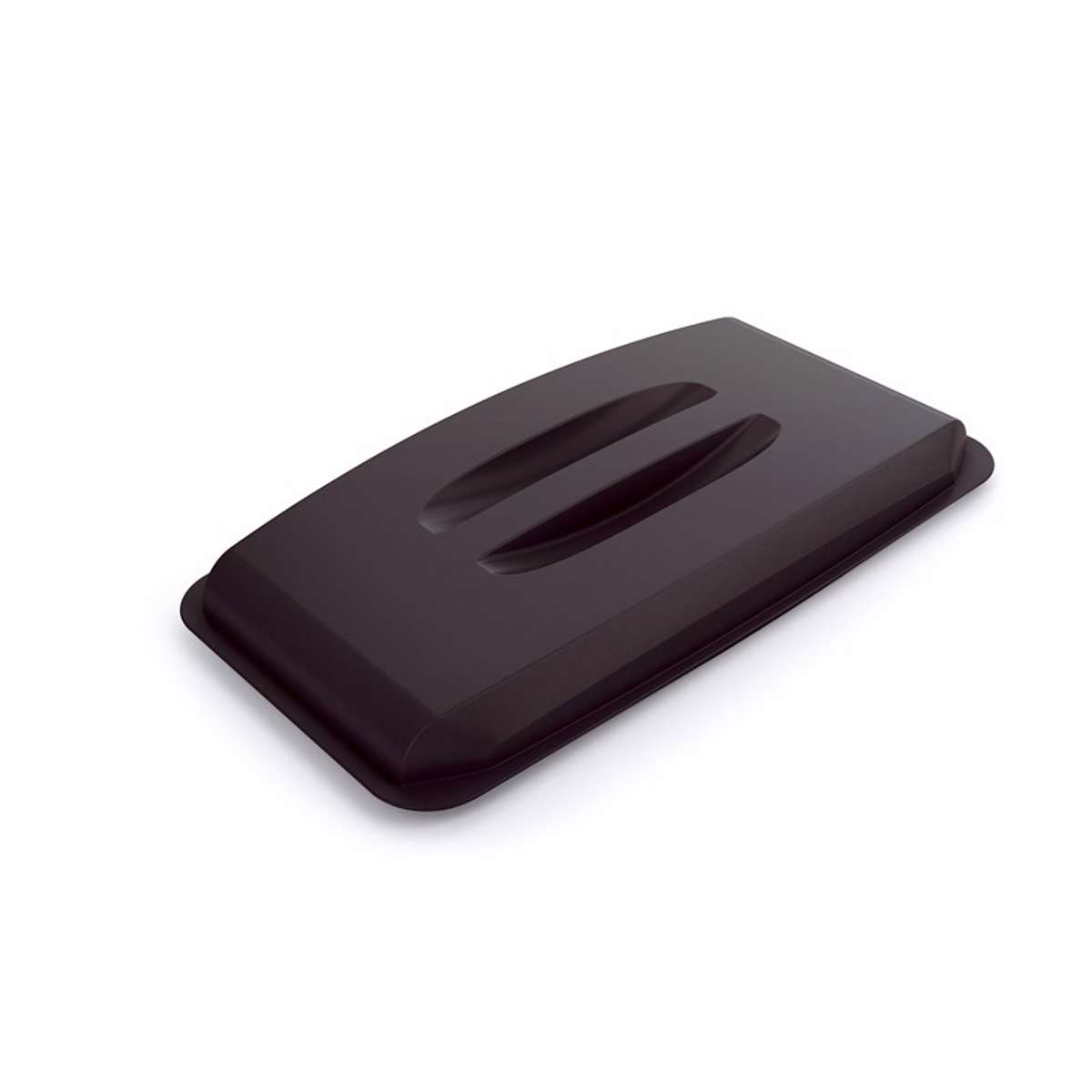 Rektangulært låg til affaldsspand DURABIN 60 liter. Gribevenlig udskæring på oversiden. Dette sorte låg er IKKE godkendt til fødevarekontakt, idet det er fremstillet af genvundet plast. Ønsker man et låg godkendt til fødevarekontakt, skal man vælge en anden farve. Durabins mobile affaldssorteringssystem til sortering og genbrug med forskelligt farvede affaldstønder og låg, gør det enkelt , at lægge det rigtige affald i den rigtige affaldstønde. Som tilbehør findes låg og vogne til 1 eller 2 spande.