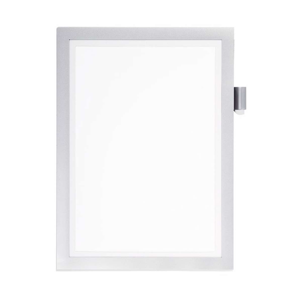 Den åbne forside på den selvhæftende magnetramme DURAFRAME NOTE gør det enkelt og brugervenligt at skrive bemærkninger, foretage ændringer på A4 arket som sidder i magnetrammen eller skifte indhold, igen og igen. Velegnet til deltagerlister, husregler, brugsanvisninger, salgsskilte, tilbudsopslag og meget andet. Den selvklæbende ramme kan placeres på forskellige overflader: døre, glasruder, malede overflader og lign. Rammen åbnes fra forsiden, er flytbar og kan læses fra begge sider. Opsætning på overflader som tapet, porøse materialer og andre ikke klæbebare overflader anbefales ikke, da disse overflader kan tage skade. Vær opmærksom på at overfladen inden opklæbning er helt ren og tør inden DURAFRAME® påsættes, ligesom nymalede og lakerede overflader skal være hærdede inden opklæbning. Kapacitet op til 5 ark 80 g papir. Penneholderen på siden passer til alle typer penne med clips. 1 stk. pr pose