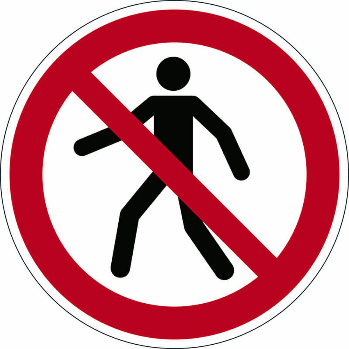 - Dimensioner: Ø 430 mm, tykkelse: 0,4 mm, farve: rød, symbol: "Forbudt for fodgængere", selvklæbende, slidstærk og slidstærk, registreret sikkerhedsetiket til mærkning af fareområder , parkeringspladser, fortove mv