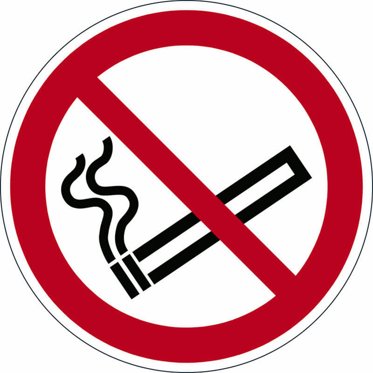 - Dimensioner: Ø 430 mm, tykkelse 0,4 mm, farve: rød, symbol: "Rygning forbudt", selvklæbende, registreret sikkerhedsskilt til mærkning af fareområder, parkeringspladser, fortove osv.