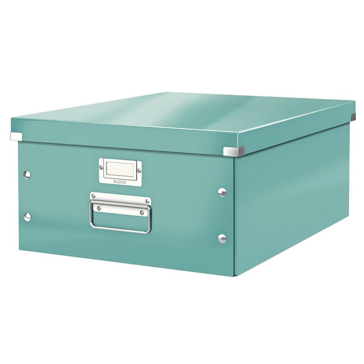Opbevaringskasse Leitz Click & Store WOW Large. Iøjnefaldende og stilfuld opbevaringsboks til A3 formater - tegninger, plakater og andre ting og sager. Let og hurtig at samle takket være trykknapsystemet, og lige så let at klikke fra hinanden igen for pladsbesparende opbevaring. Opbevaringskassen er desuden velegnet til at stable. Det skinnende PP finish giver et premium udseende på boksen, langvarig brug og de er lette at støve af. Kassen har en højkvalitets metal etiketholder med hvid etiket, der gør det let at se indholdet i boksen, og robuste metalhåndtag, der letter håndtering af boksen.