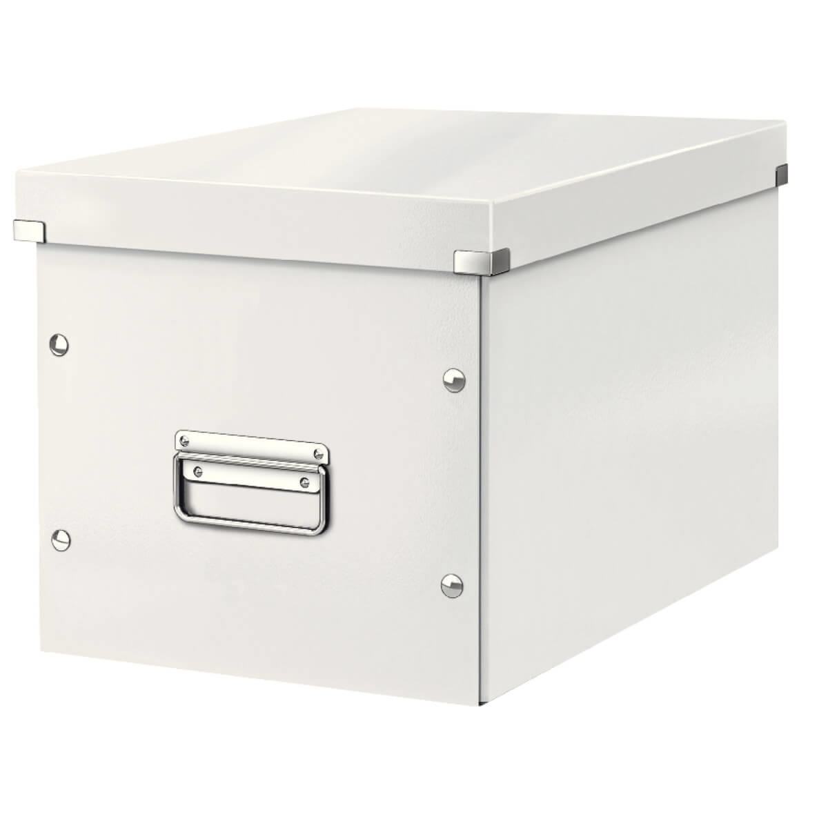 Iøjnefaldende og stilfuld opbevaringskasse i Kubus design giver ekstra kapacitet. Ideel til opbevaring af høje eller runde former. Passer perfekt til standard kubus møbler (f.eks. Kallax fra Ikea). Lavet af stærk, premium karton med lamineret overflade og metal hjørneelementer til robust beskyttelse. Robuste metalhåndtag giver nem transport. Sammenfoldelig til pladsbesparende opbevaring, når den ikke er i brug og hurtig at samle igen takket være trykknapsystemet. Dette moderne design ser godt ud på ethvert kontor.