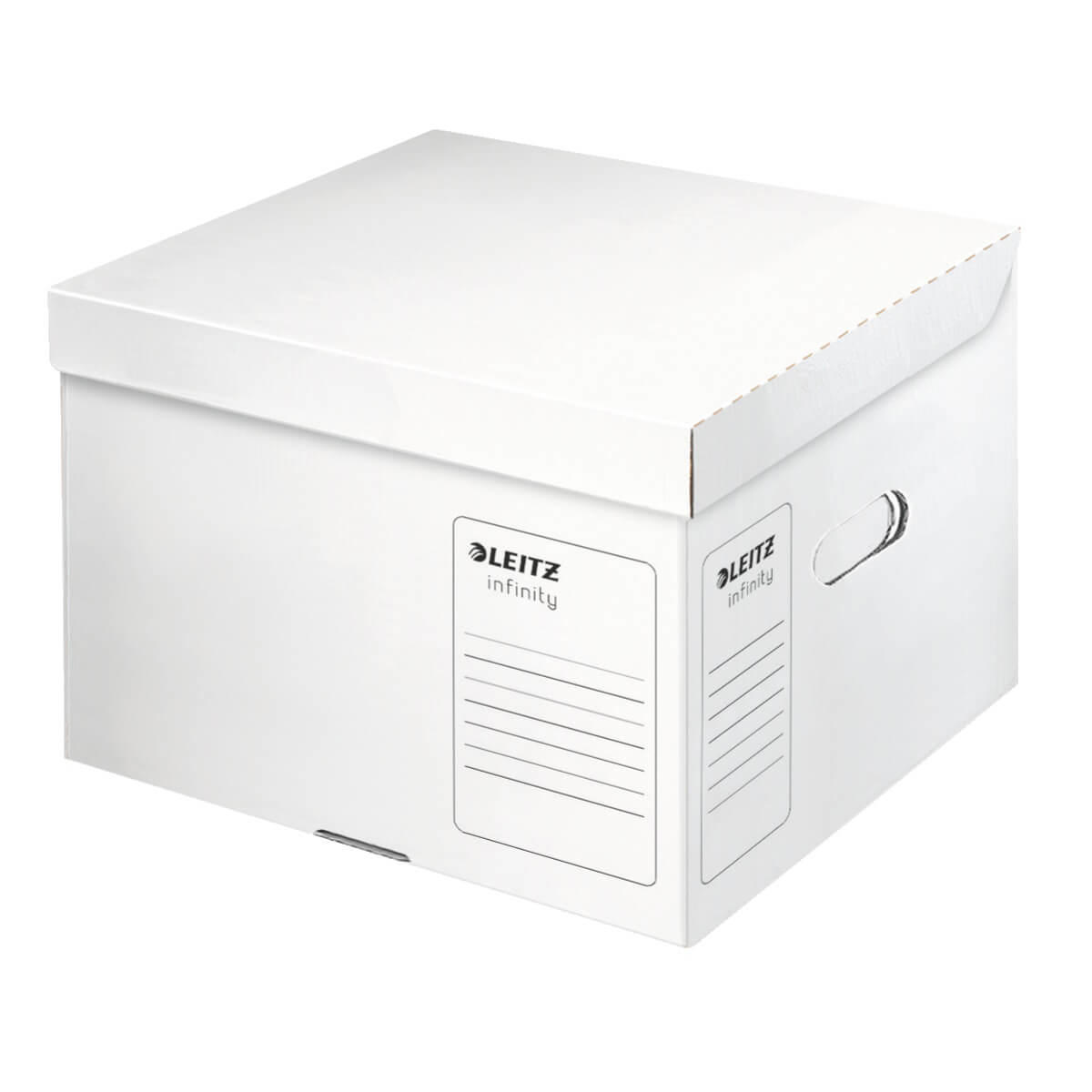 Leitz Infinity arkivæsker er designet med en perfekt højde til hyldesystemer, hvilket gør dem lette at opbevare og tilgå. De har en ideel kapacitet/vægt forhold, hvilket gør dem lette at bære, selv når de er fuldt fyldte. Æskerne er specielt tilpasset til A4 papirer og dokumenter, der opbevares i Infinity A4 omslag, og de passer perfekt til 3 x 100 mm eller 2 x 120 mm arkivæsker.