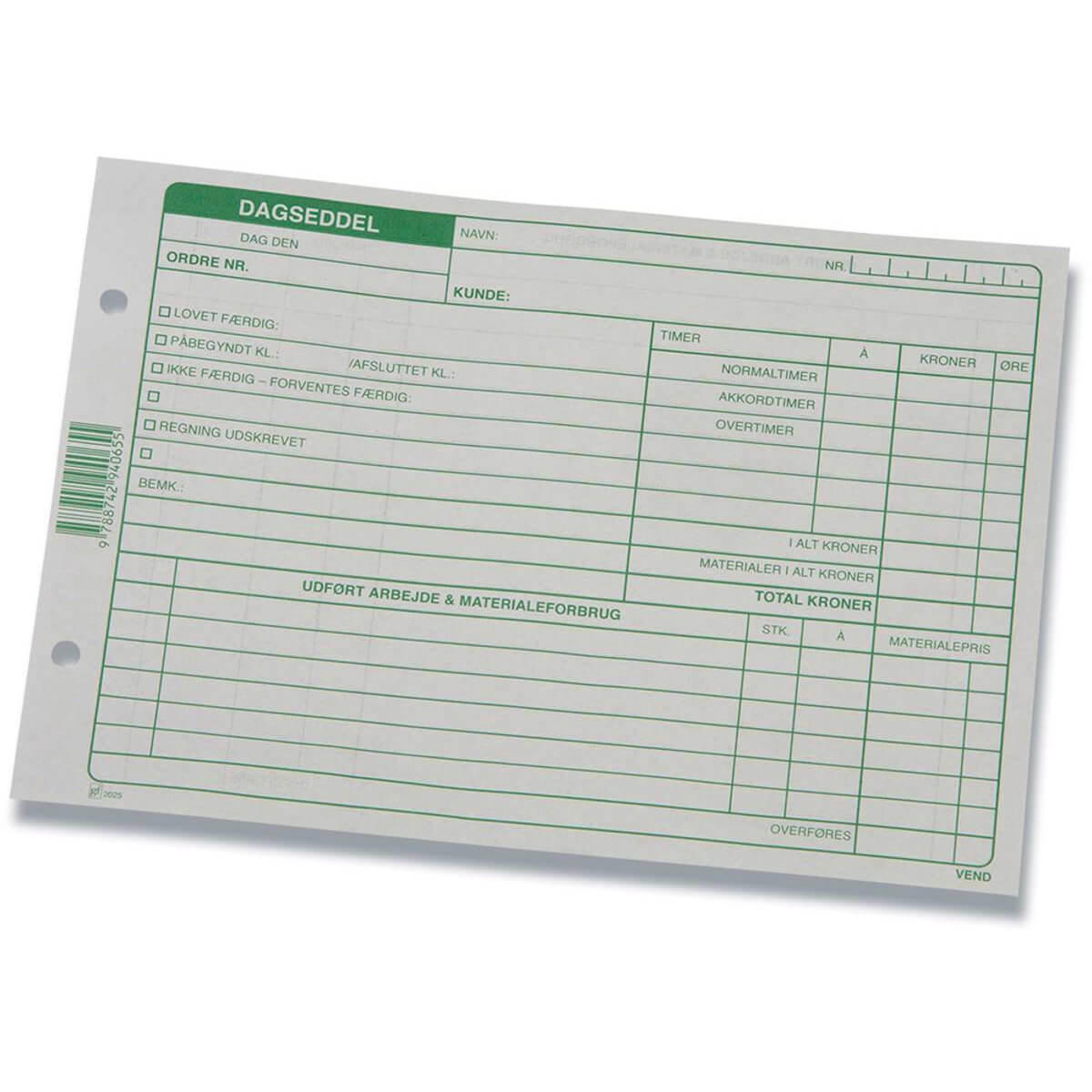 Dagseddel GF2025 200X148 mm 1X100 Blade - Få overblik over arbejdstimerne med en Dagseddelbog - fra Grafisk Forlag