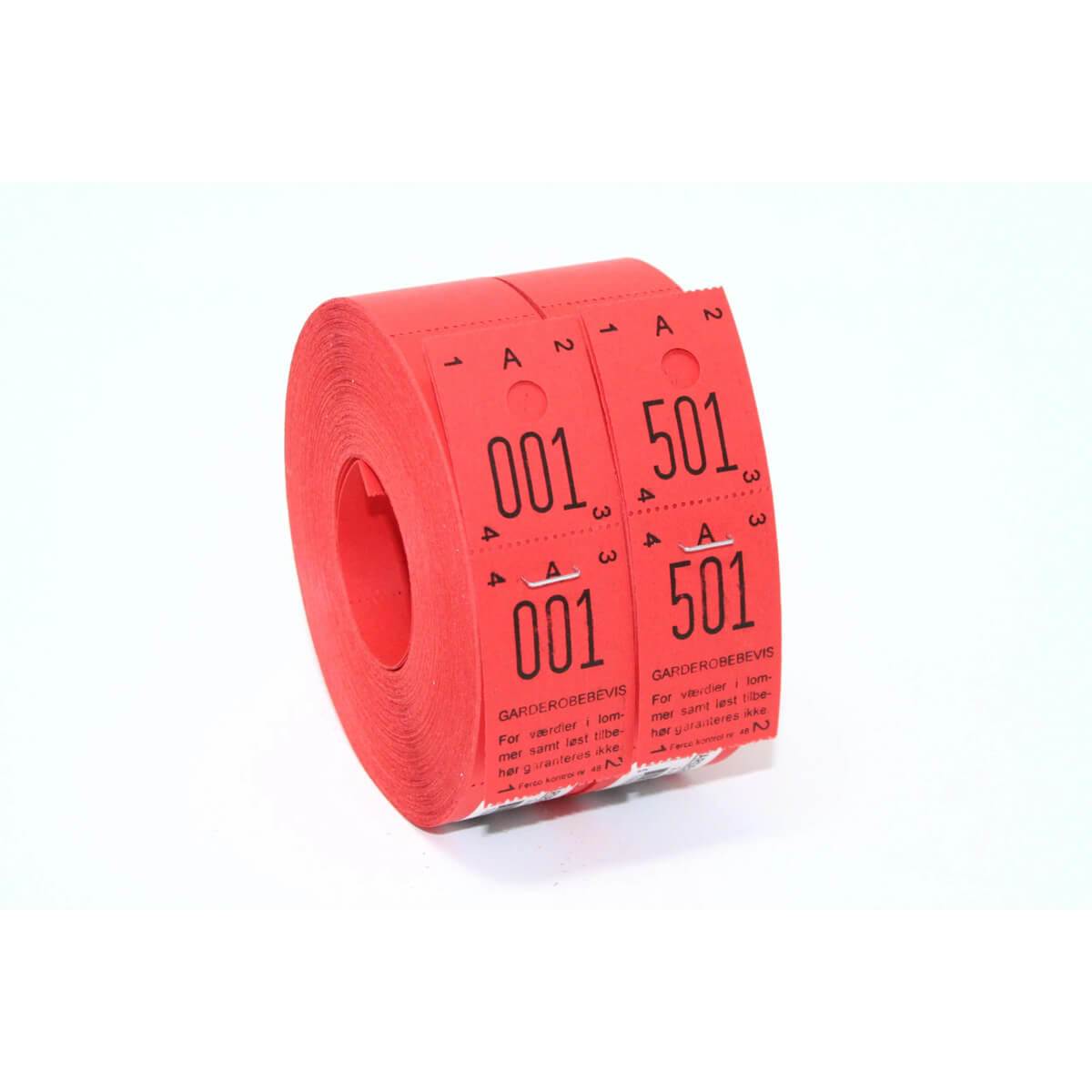 Garderobenumre 2-delt, rød - 2 x 500 stk.