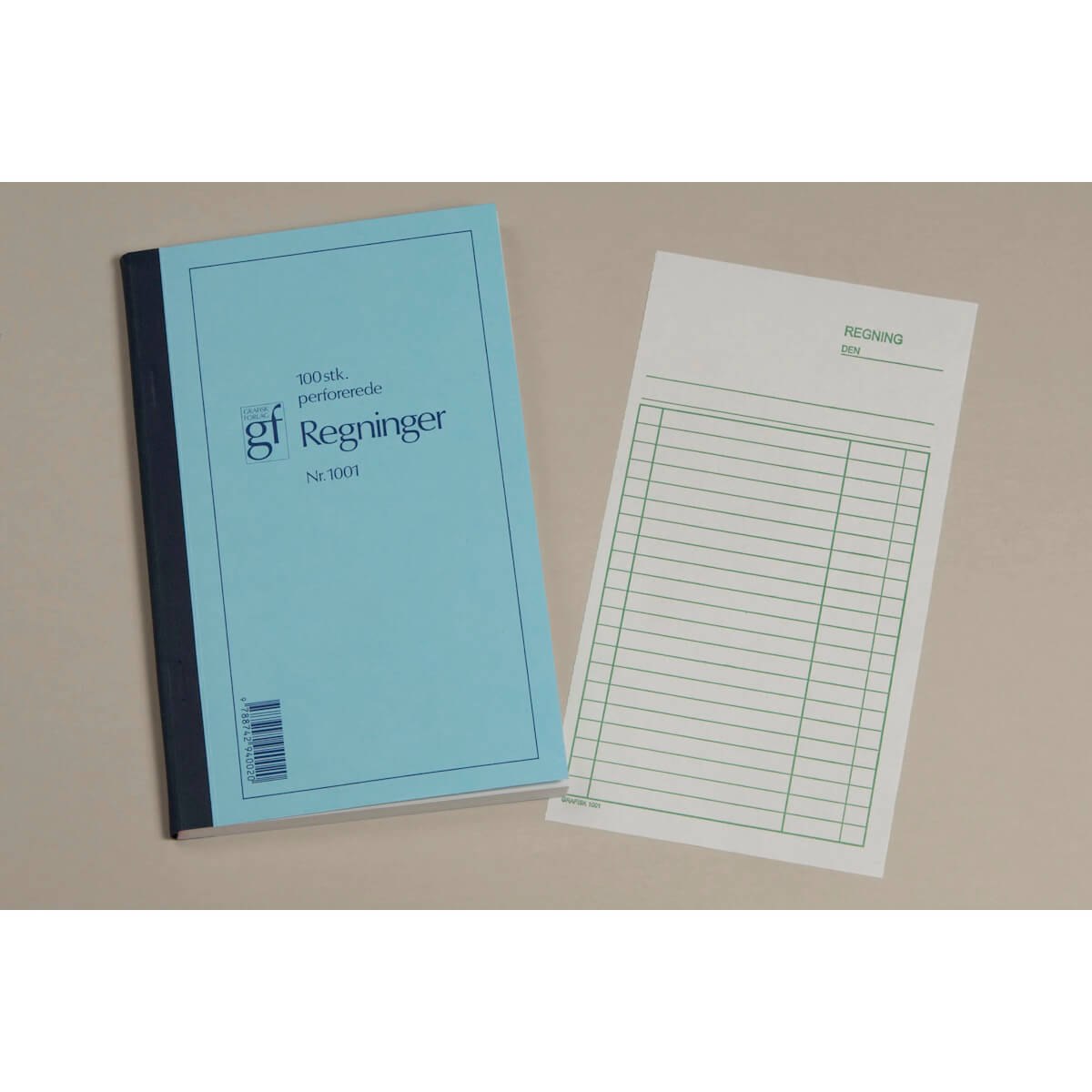 Regningsbog med 100 perforerede regninger. Fra Grafisk forlag.