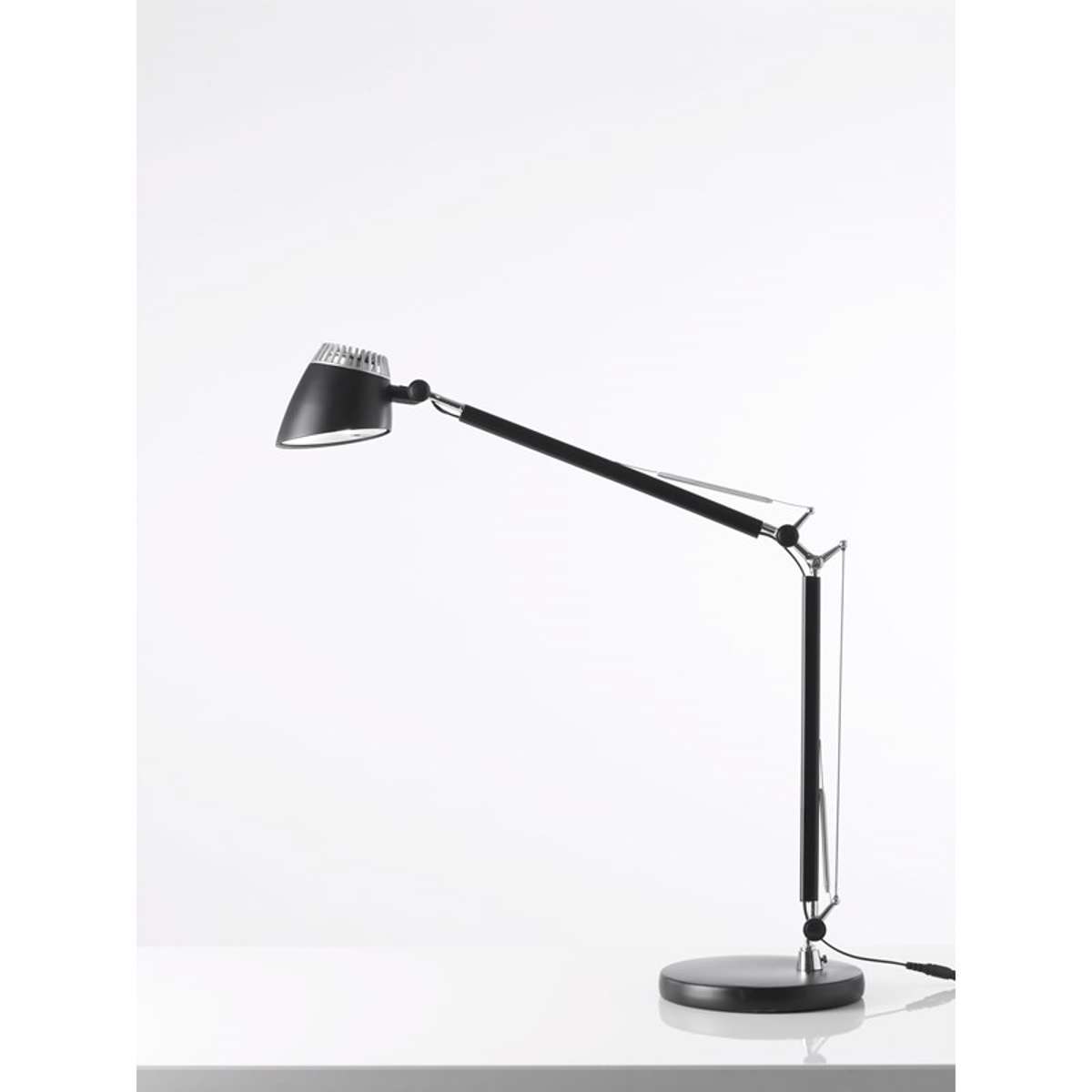 Asymmetrisk bordlampe til kontormiljøer med høje krav til funktionalitet og design. Sort eller sølv med krom detaljer. 3-leddelt arm, justerbart lampehoved, 3-trins lysdæmper og timer gør Valencia til en meget fleksibel lampe. Mulighed for at vælge automatisk shut-off timer, hvilket sparer energi. Timeren kan indstilles til 2, 4 eller 8 timer. Knapperne er praktisk placeret på undersiden af lampehovedet. Fås i sølv og sort.