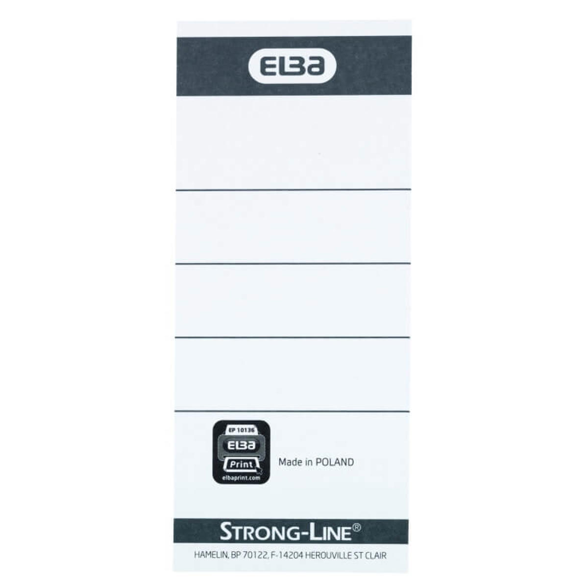 Strong-line rygetiketter fra Elba der kan bruges til at skabe overblik i dine brevordnere. Etiketterne passer til brevordnere på 75 mm eller 80 mm, og er lavet af 250 g/m² karton med sort tryk på begge sider, og leveres i en pakke med 10 etiketter pr. pakke.