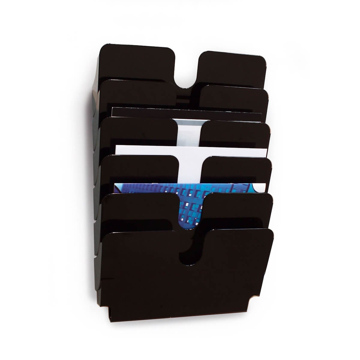 Flexi-serien er udviklet med fokus på funktionalitet og fleksibilitet. De 6 rum i liggende A4-format giver dig mulighed for at præsentere flere materialer side om side, så kunder og besøgende nemt kan finde det, de søger. Hver bakke har en kapacitet på op til 24 mm, hvilket gør den velegnet til både brochurer, kataloger og formularer. Derudover gør dens modulære design det også muligt, at anvende bakkerne samlet eller hver for sig, således, at du nemt kan udvide løsningen med flere rum efter behov.
