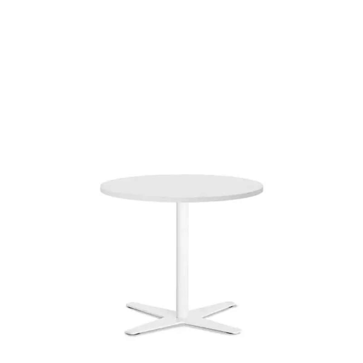 Bord Amy med Ø650 mm bordplade i hvid DPL med hvidt understel, højde 582 mm.