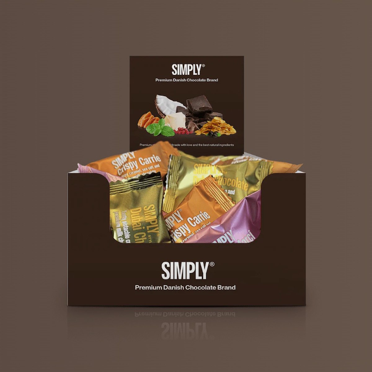 Med Favorite Mix får du det bedste af Simply samlet i én stor æske. Her finder du 75 stykker af vores absolutte favoritter – skabt til at dele, give som gave eller til at forkæle dig selv med, når chokoladetrangen melder sig.