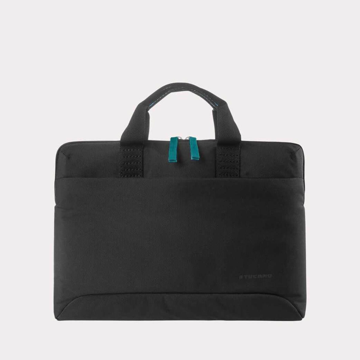 Mere miljøvenlig og Slank computertaske til 14" Laptops og MacBook Pro 14" i Stof Fremstillet af Genbrugsplastik med Elegante Kontrastdetaljer. Designet med Et Enkelt Indvendigt Rum Udstyret med Neopren Hjørner for At Beskytte Din Bærbare Computer. På Forsiden Finder Du en Stor, Ekstern Lomme til Ekstra Opbevaring. Tasken Har Dobbelt Håndtag og En Aftagelig Skulderrem.