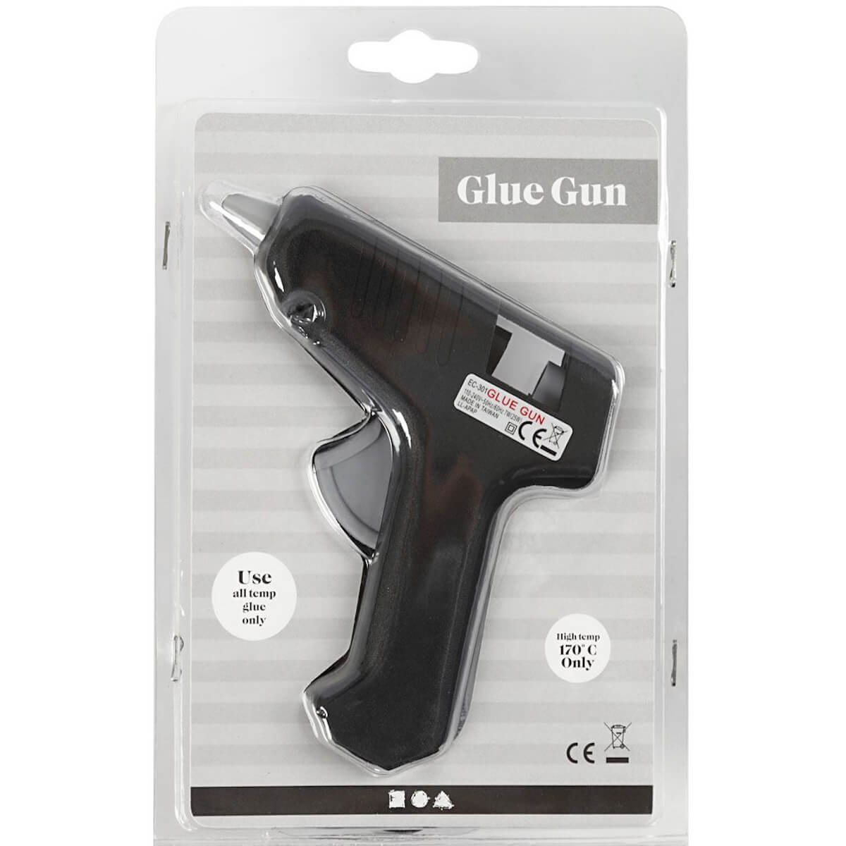 - Højtemperatur limpistol, hvor limen smelter ved 170 °C, for stærk og hurtig limning.
