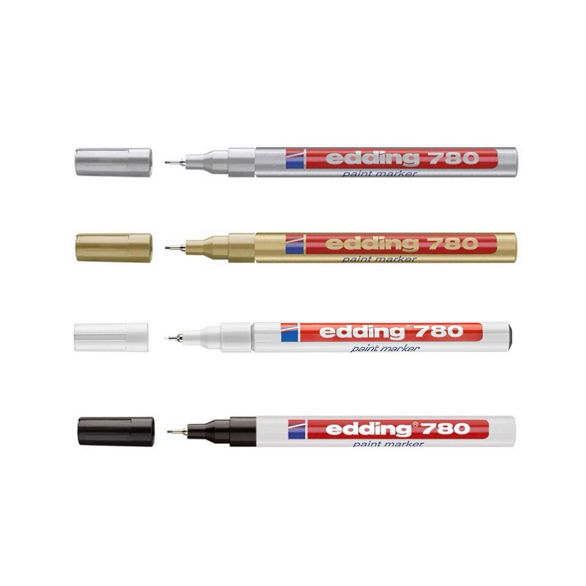 - Edding 780 paint marker fås i flere dækkende farver, inkl. metallic, til både professionelt og kreativt brug.