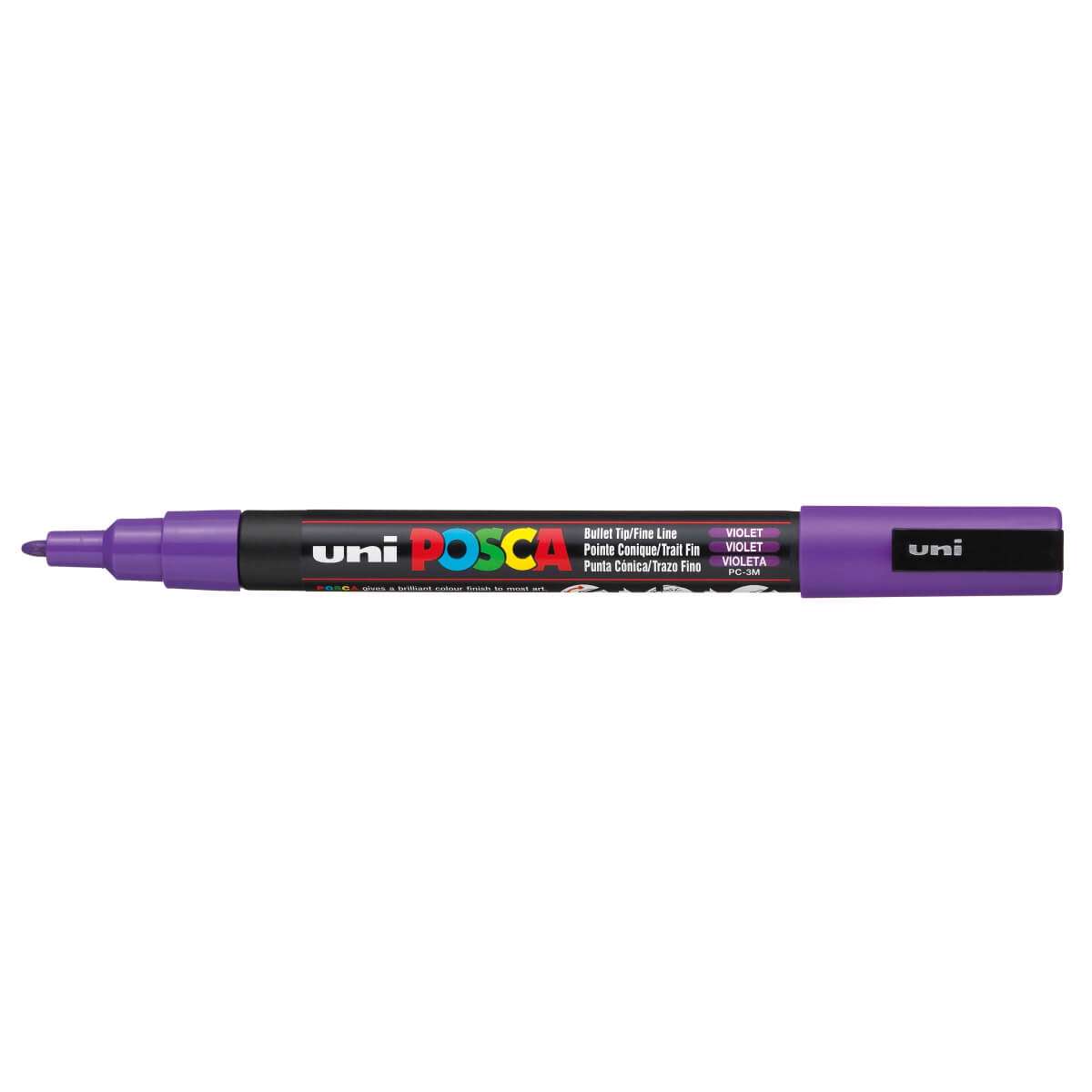 Vandbaseret paintmarker til brug på de fleste materialer. Posca er en giftfri marker uden alkohol og opløsningsmidler. Posca PC-3M har en spids, der kan vendes, når den er slidt. Posca PC-3Ms fine runde spids er designet til specialister. Pennen kan bruges til at tilpasse, skabe, dekorere eller markere alt, der inspirerer dig, i en ensartet streg. Pennen skal rystes kraftigt, så kuglen får lov at blande farven, med påsat hætte hver gang, du skal bruge den. Kun fantasien sætter grænser for brugen af Posca. Spidsen kan renses med vand. Hvis du har lavet en fejl, eller ønsker at ændre udseende på dit arbejde, maler du blot over med den nye farve, så let er det. Posca er den ultimative pen til dit kreative arbejde. Besøg www.posca.com og se en bred vifte af kreative workshops, som du kan downloade og arbejde ud fra. Posca er permanent på papir og pap. Hvis du ønsker et holdbart resultat på terracotta, træ, sten, metal, porcelæn, plastik og glas anbefales det at spraye med en klar lak. For holdbart resultat på stof, stryges der på bagsiden af stoffet. Posca kan fjernes på glas og andre glatte overflader med en våd klud også på glastavler. Farvelæg dine blade, bark, borde, bænke, blokke, breve og alt det andet du gerne vil have frisket op.