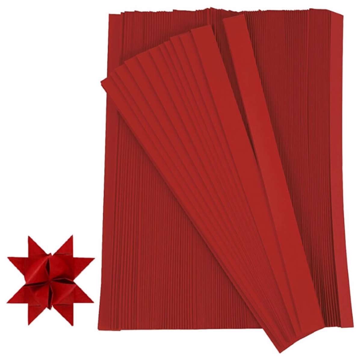 Stjernestrimler i rød - 1 Pk., 500 Strimler, L: 45 cm, Diam. 6,5 cm, B: 15 mm, Skab varm og hyggelig julepynt - DIY
