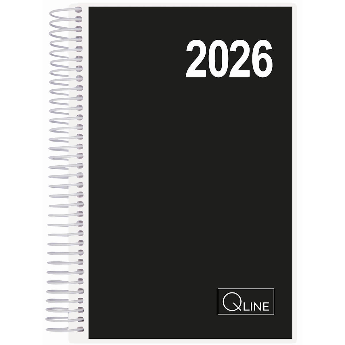 Kalender 2026 spiralkalender fra Q-Line dagkalender sort 12x17cm