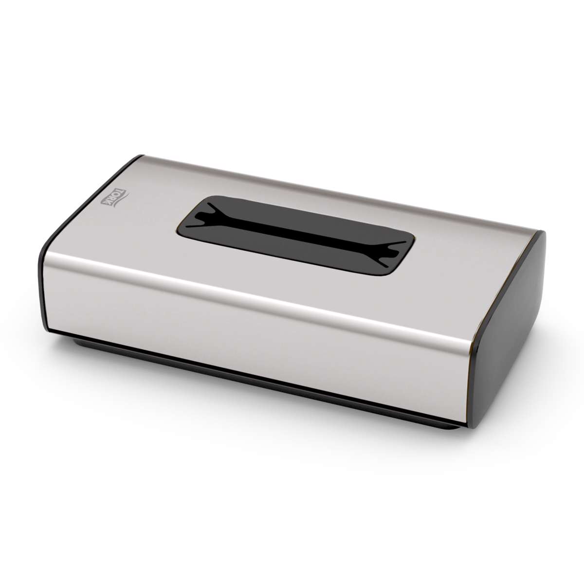 Slank dispenser som kan monteres på væg eller placeres på bord, så den passer ind i toilettets interiør og bidrager til, at rummet altid tager sig godt ud.