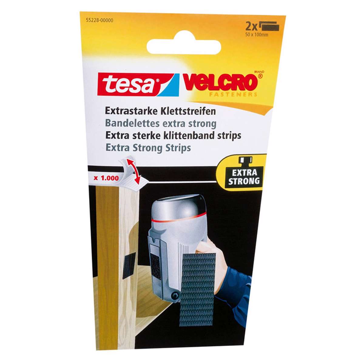 Tesa Velcro - Ekstra stærk velcrotape eller burretape til fastklæbning. Til fastgørelse af tunge genstande såsom værktøj.