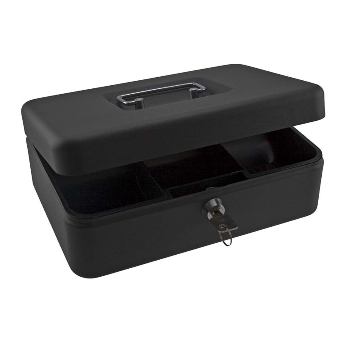 • Pengekasse i formstøbt stål med 6 rums møntbakke i plastik. Der medfølger to nøgler til cylinderlåsen.