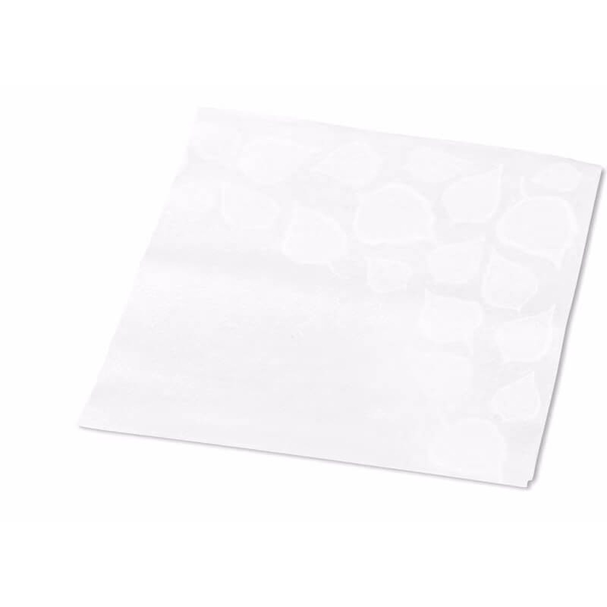Servietterne er dekorerede med et elegant, hvidt blad-motiv.
