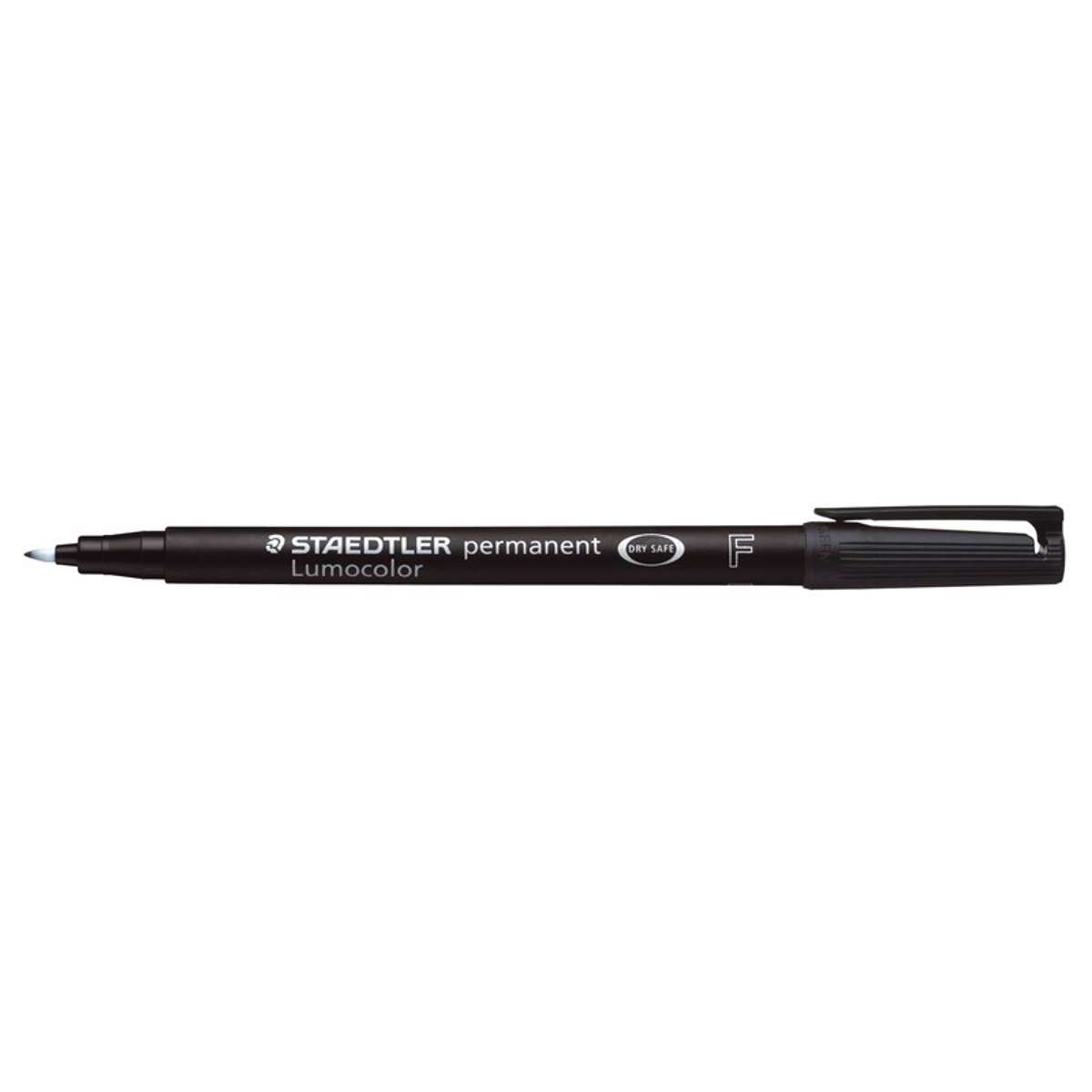 • Staedtler Lumocolor er en permanent OHP-pen ( Overhead Projector Pen ) i uovertruffen kvalitet. Den skriver på stort set alle overflader (bl.a. glas, sten, træ og papir). Tuschen er også velegnet til mærkning af CD medier. Det farveintensive, lugtsvage blæk tørrer på sekunder, og pennen er derfor ideel for venstrehåndede. Den sorte Lumocolor er vejrbestandig og den sorte og brune er sol-bestandige. Det særlige DRY SAFE blæk kan tåle at efterlades uden hætte i flere dage uden at tørre ud. Markeren er desuden flysikker - giver ikke lægkage under flyrejse. Xylen og toluen-fri. Fås i M med 0,8-1 mm streg i sort, blå, grøn og rød. I S med 0,4 mm streg i rød, blå, sort, grøn, og i F med 0,6 mm streg i rød, blå, grøn og sort. Samt i diverse sæt.