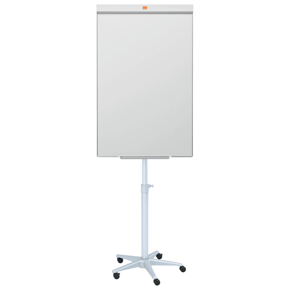 Mobil og magnetisk flipover whiteboardstativ med moderne, smal ramme, der maksimerer skrivepladsen på tavlen. Den rummelige pennebakke sidder under tavlen uden at gå indover overfladen. Flipover tavlen har højdejusterbar base med aflåselige hjul, som gør det nemt og praktisk at flytte tavlen rundt mellem mødelokaler. Whiteboardtavlen har en ståloverflade med Nano Clean™ overfladeteknologi, hvilket giver tavlen en øget sletbarhed. Leveres med kroge, til at hænge en flipoverblok på, pennbakke og en Nobo dry wipe marker. Denne flipchart er også udstyret med en ´riv væk´ bjælke, som gør det let at fjerne papiret efter brug. Nobo tilbyder 15 års garanti på Nano Clean overfladen.