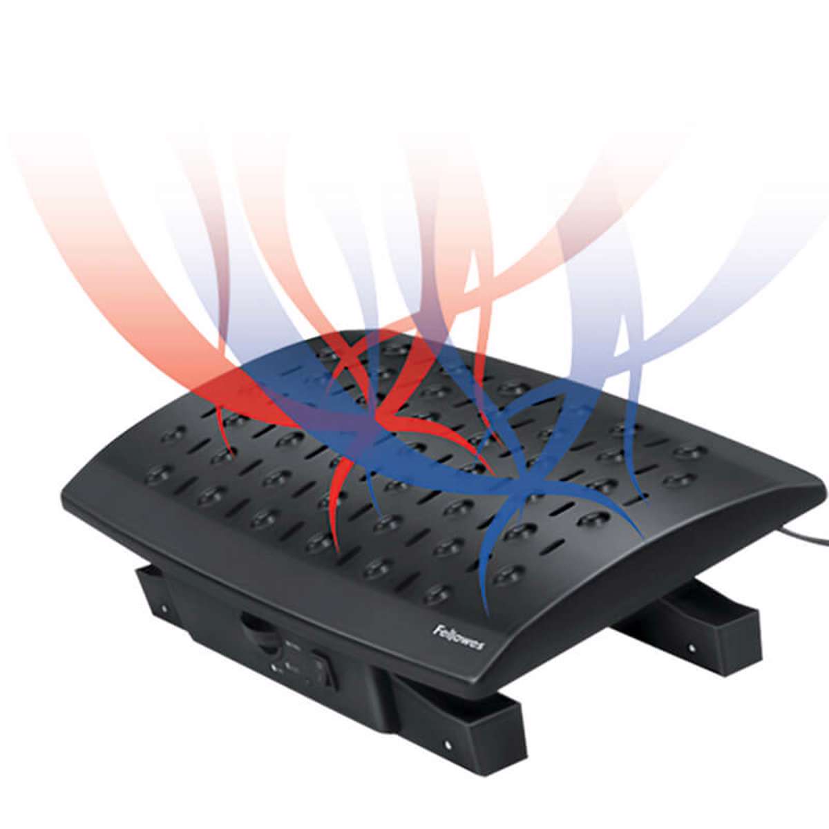 Skridsikker fodstøtte fra Fellowes med indbygget blæser som alt efter ønskemål kan indstilles på kold luft, lav varme & høj varme. Perfekt for den som altid fryser eller sveder på kontoret.