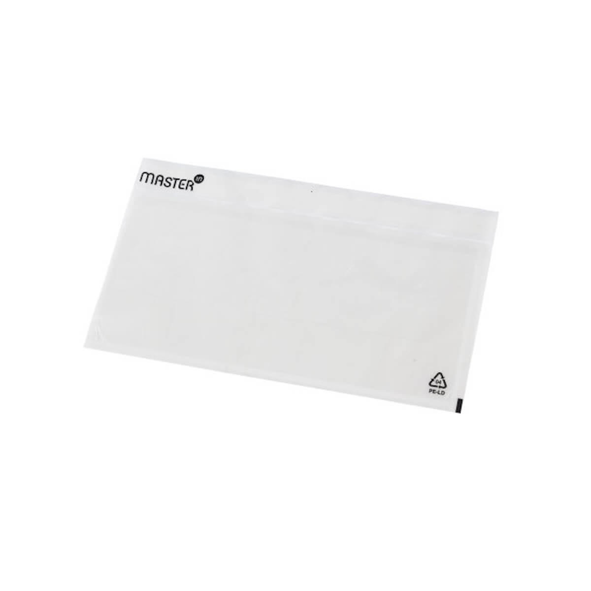 Master'in Performance Selvklæbende følgeseddellomme lavet af transparent folie, Med permanent klæb som er beskyttet af et hvidt papir Materiale: Udv. folie 40µm indv. folie 20µm Papir 46g /m²