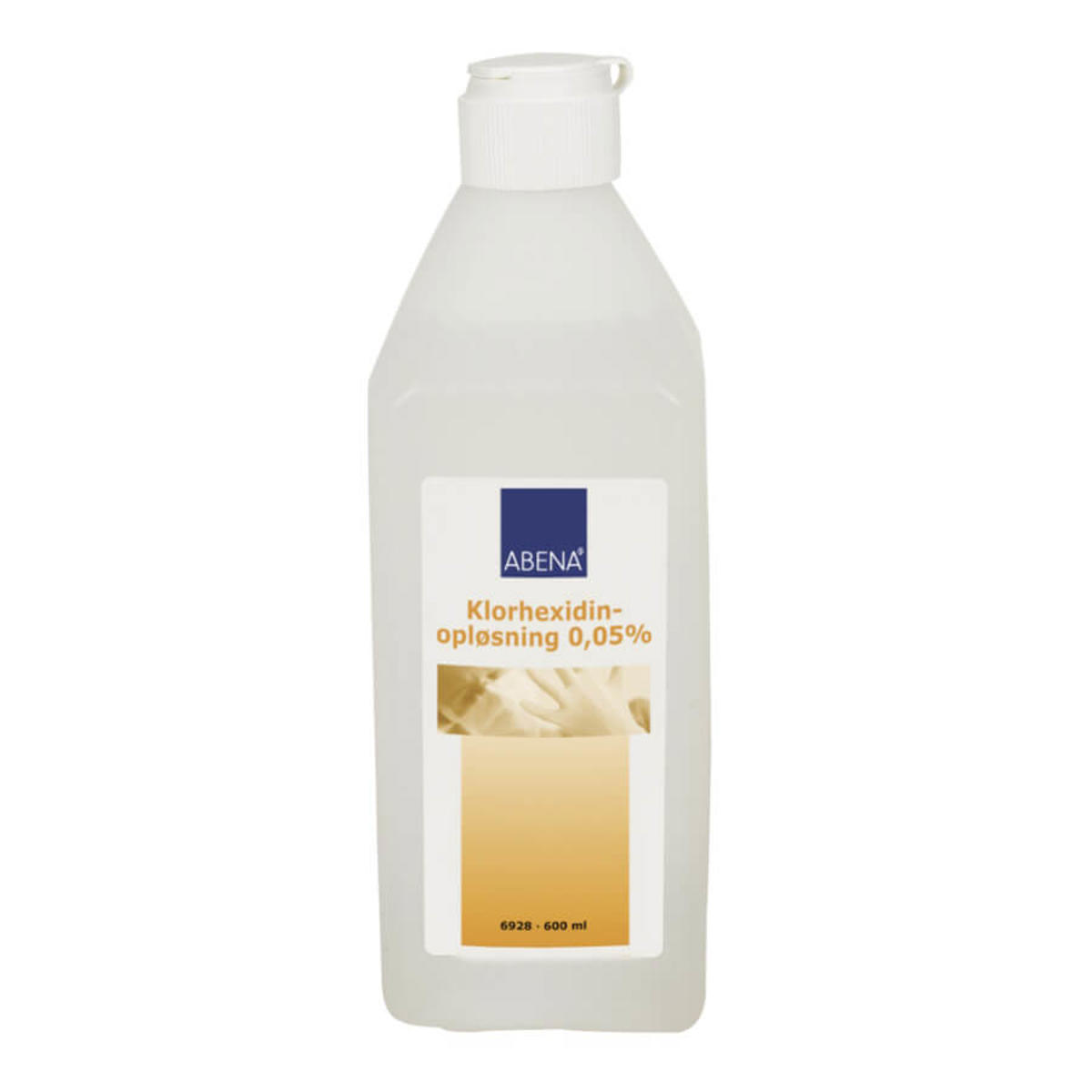 Klorhexidinopløsning, ABENA, 600 ml, 0,05% Clorhexidin Digluconat,flaske med kliklåg