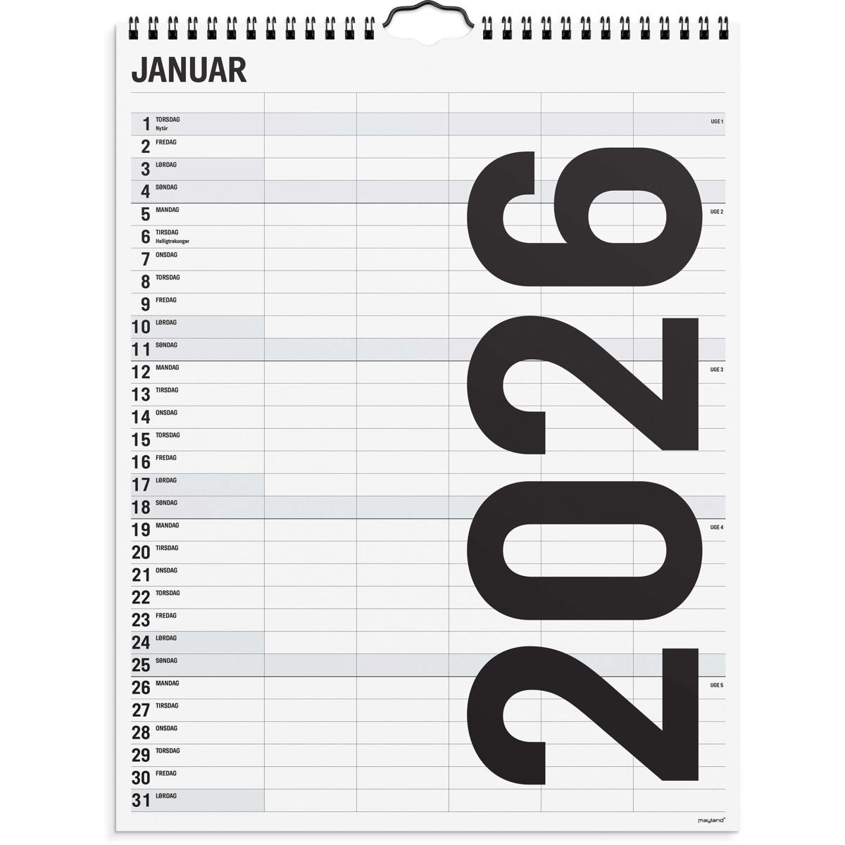 - Type: Vægkalender