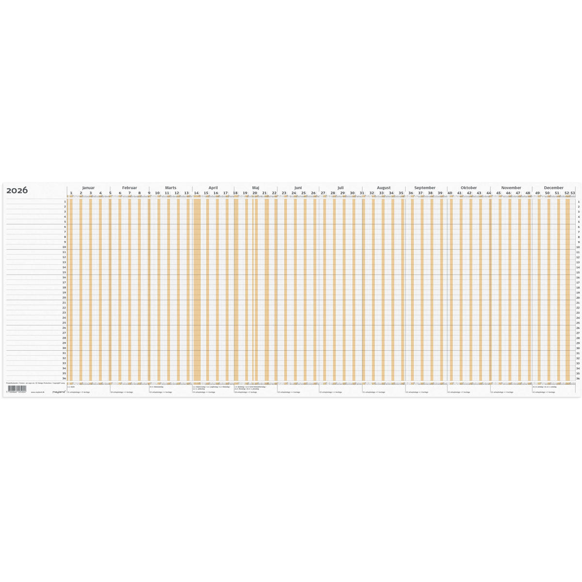 Specielt anvendelig til produktionsplanlægning, kursusprogrammer, reklamekampagner, rejseplaner m.m. Leveres foldet til A4.