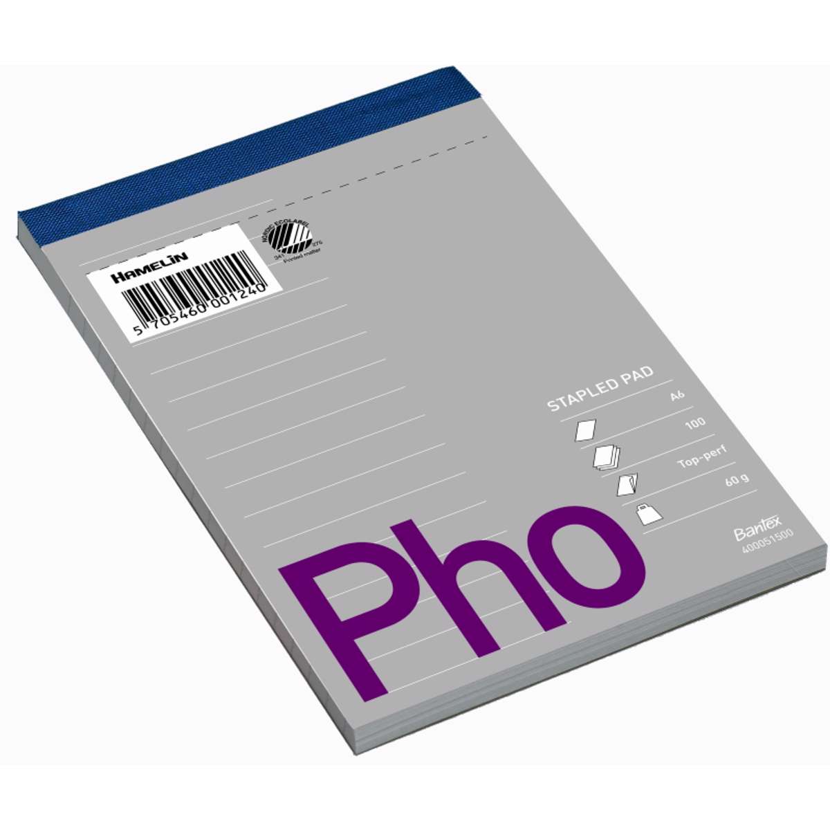 Toplimet telefonbeskedblok i praktisk lille A6 format med linjering og mikroperforering, så det er nemt at rive ark af. Bantex telefonblokke er alle hæftet i toppen og forsynet med blå lærredstape. Telefonblokkene er Svanemærkede og EU-Ecolabel certificerede.