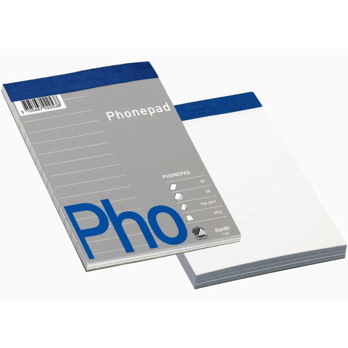 Toplimet telefonbeskedblok i praktisk lille A7 format med linjering og mikroperforering, så det er nemt at rive ark af. Bantex telefonblokke er alle hæftet i toppen og forsynet med blå lærredstape. Telefonblokkene er Svanemærkede og EU-Ecolabel certificerede.