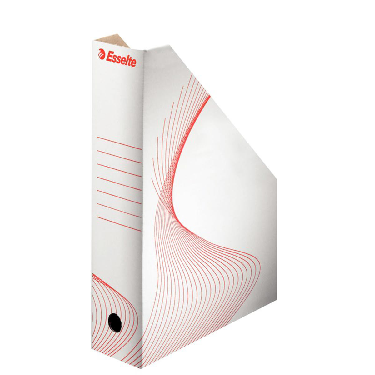 Stærk og stabil tidsskriftsamler fra Esselte, der samles nemt og intuitivt. Den super anvendelige tidsskriftsamler har stået sin kvalitetsprøve ved brug i over 25 år. Den er perfekt til arkivering og opbevaring af kataloger, magasiner, brochurer men også tilbudsmapper, lommer, charteqs og løse A4 dokumenter. Indhold kan beskrives på de røde fortrykte linjer på ryggen, og fingerhullet gør det nemt at trække kassetten ud fra reolen. Materialet er 100 % genbrugsbølgepap og kapaciteten er 1000 ark.