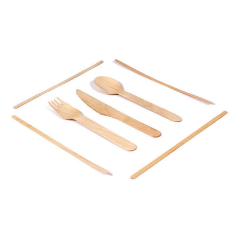 Vi fører også træ-bestik og rørepinde i birketræ fra Nature Line. Engangsartiklerne er fremstillet af rent træ, uden brug af olie, kemikalier eller andre sundhedsskadelige eller miljøbelastende stoffer. Friskt træ udskæres i tynde finerplader, som derefter udstanses i form som gaffel, kniv osv. Derefter presses det flade bestik vha. ren vanddamp i den endelige form med kurver og buer på rette steder, så det bliver behageligt at holde på og anvendeligt at spise med. Når du kasserer dit bestik, er det således også 100% biologisk nedbrydeligt og afgiver ingen skadelige gasarter til luften eller giftstoffer til jorden.