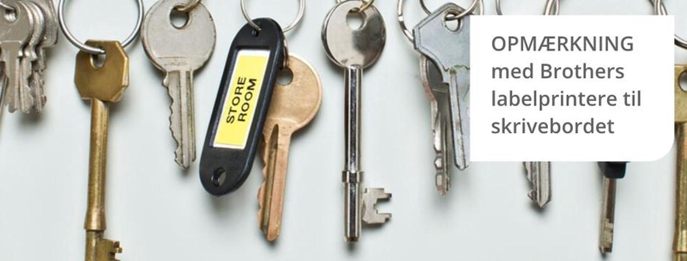 Skab holdbare labels på mange ting med Brothers P-touch labelprintere. De kan printe labels i flere forskellige størrelser, så du samt hurtigt og præcist få orden og overblik. Brug labels til arkivering, fx på brevordnere eller arkivbokse, hylder, brevbakker og dueslag. Brug dem på nøgler og nøgleskabe, eller til at opmærke elektronisk udstyr, kabler og lignende. Du kan finde labeltape specielt designet til de fleste anvendelser. Indendørs og udendørs opmærkning.